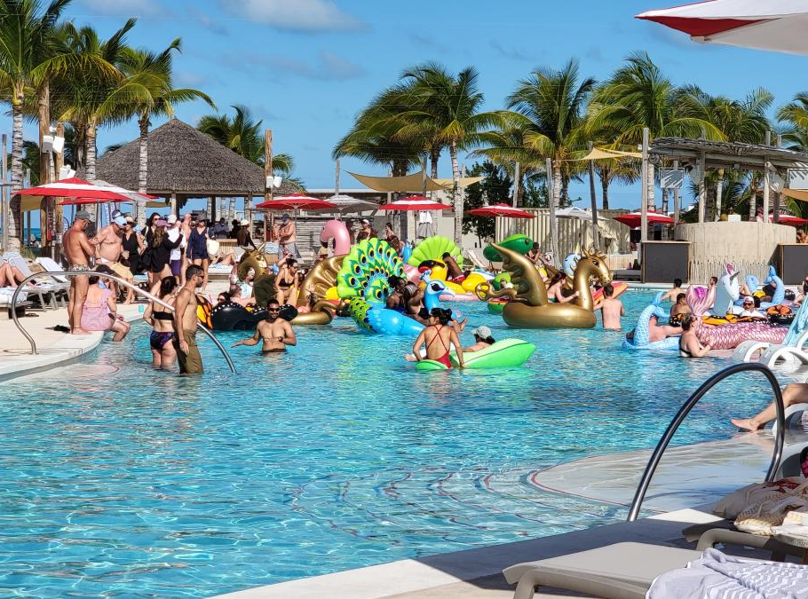Virgin is famous for it’s adult-only, stylish, playful, sexy, and sometimes raunchy vibes aboard the ship. It’s an experience unlike any other cruise line. Their all-inclusive format avoids the annoying nickel & diming of other cruise ships and everything except alcohol (and specialty drinks like espresso or Red Bull) is included in the ticket price and paid up-front. The dining experiences are elevated, activities and shows are exciting and targeted at adults, crew is fun and curtious, and they have themed evening parties (like Pajama Party, 80s night, Y2K party, etc.) on most nights plus the wild Scarlet Night party that takes over the entire rooftop pool deck.